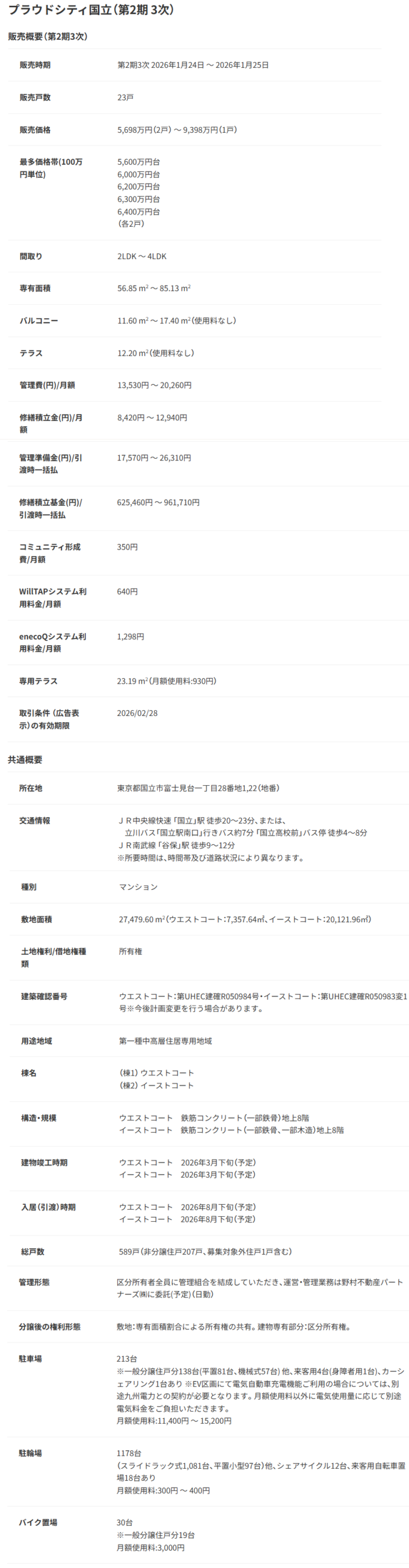 プラウドシティ国立の第2期3次の販売戸数は 23戸となりました。