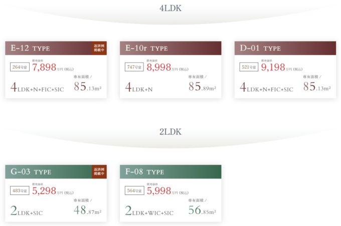 ◆ 専有面積:56.85 ㎡ ~ 85.13 ㎡