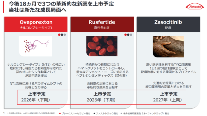 武田薬品工業(4502)3つの革新的な新薬の上市予定