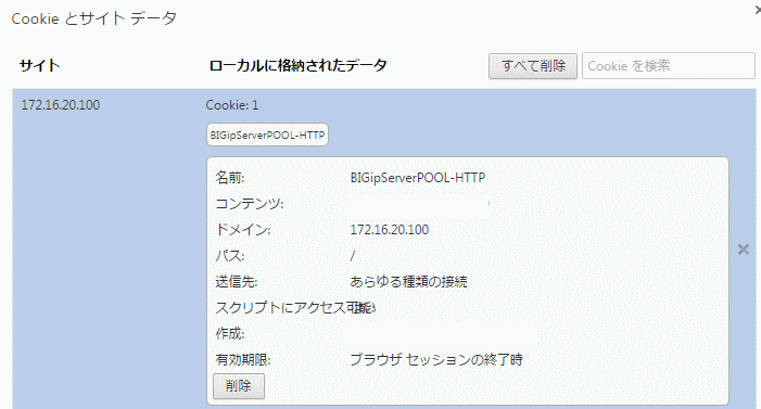 クライアントPCに発行されたCookieです。Cookieの名前は BIGipServer+Pool名 となることから、