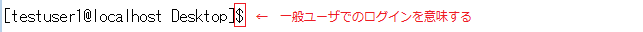 CentOSの場合、一般ユーザーでログインするとCLIで表示されるプロンプトの一番右側が $ となります。