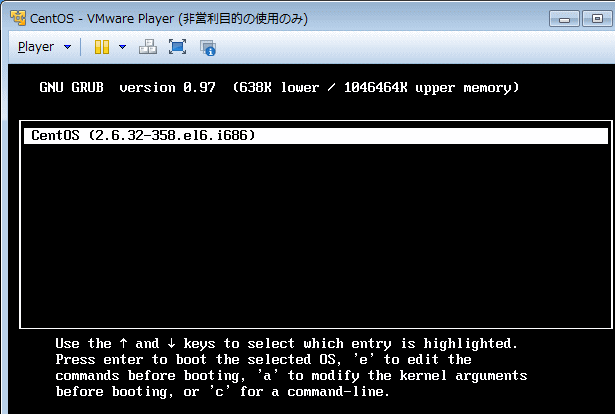 1. CentOS6.4の場合、電源ON時に以下のメッセージが表示された場合は何かキーを押します。