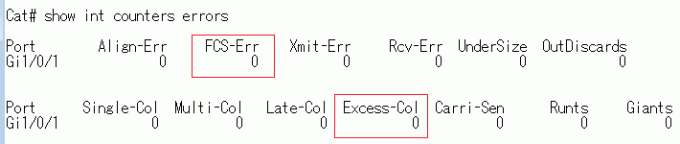 一方、FCS-Err や Excess-Col で多数カウントされている場合は注意が必要です。