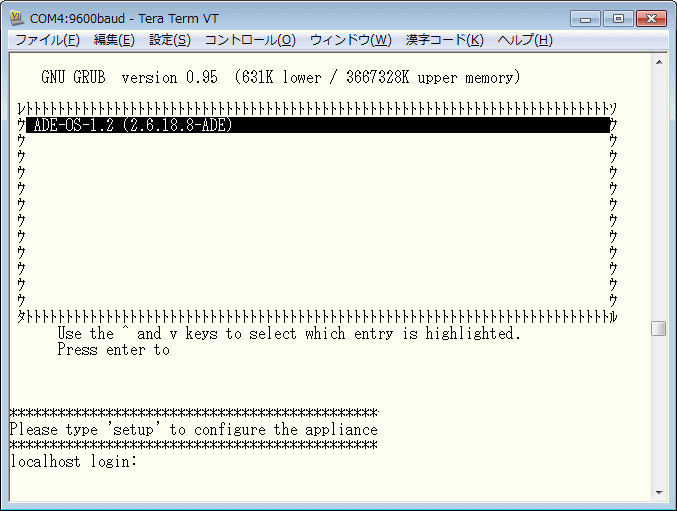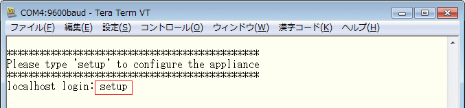 工場出荷時の場合、以下のように setup と入力してセットアップモードを開始する必要があります。
