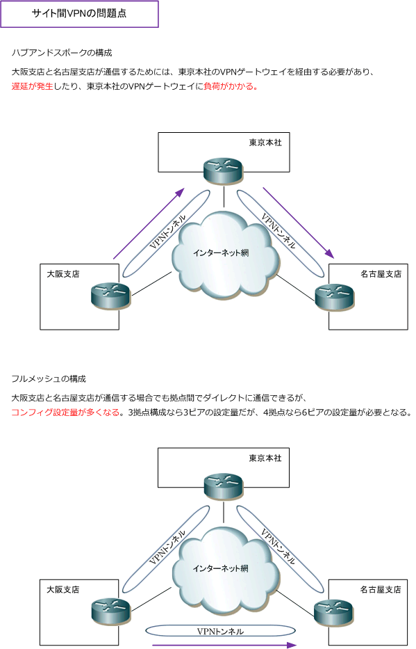 の2つの技術とIPsecといくつかの拡張機能を併用します。まずは、サイト間VPNの問題点を解説します。