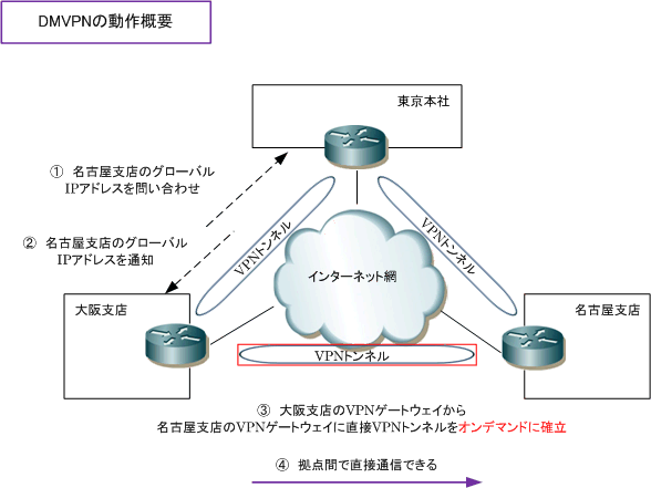 DMVPNとは、サイト間VPNの問題点を解決するために実装するVPNのソリューションのことです。この