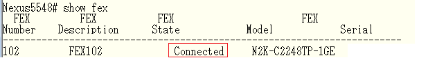 2014 Apr 30 13:49:24 Nexus5548 %$ VDC-1 %$ %PFMA-2-FEX_STATUS: Fex 102 is online (Serial number XXXXXXXXXX)