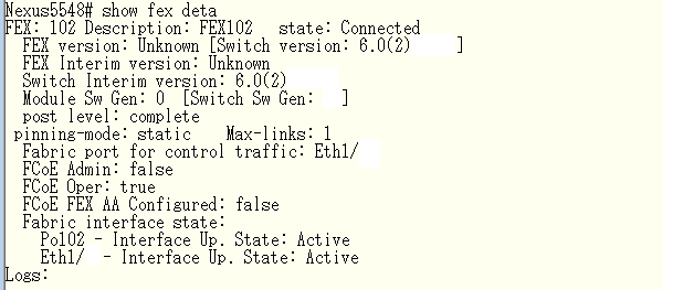 show fex detailでは、FEXバージョンと親スイッチ(Nexus5548)とのバージョンの違いが分かります。