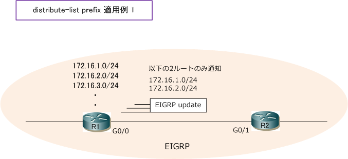 distribute-list prefixでは、フィルタリング対象のルートを「プレフィックスリスト」で指定できます。